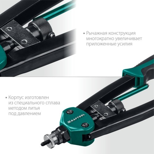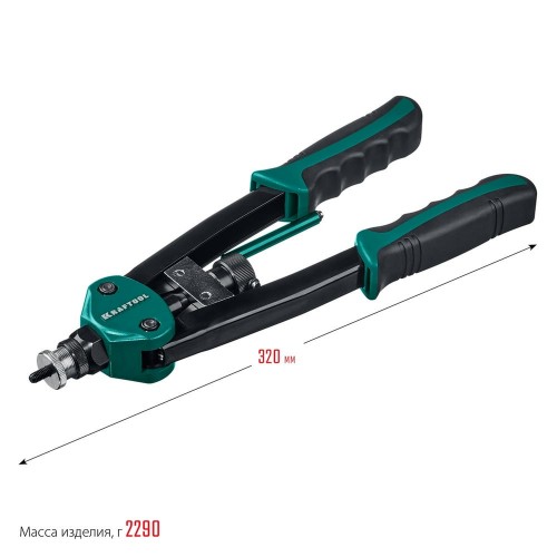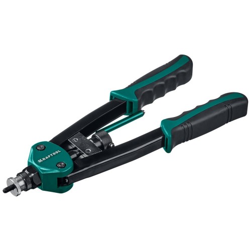 Двуручный резьбовой заклепочник KRAFTOOL выдерживает высокие рабочие нагрузки и предназначен для установки резьбовых заклепок из алюминия, стали и нержавеющей стали.