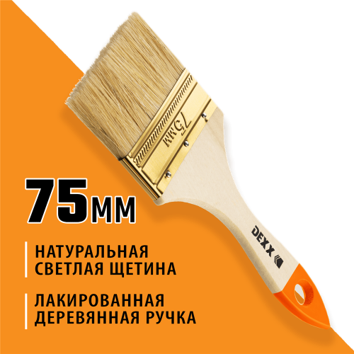 DEXX 75 мм, 3", щетина натуральная, кисть плоская "ПРАКТИК" 0100-075_z02