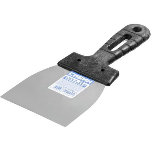 Шпатель СИБИН - отличный выбор для строительства и ремонта! Полотно из нержавеющей стали обеспечивает надежность и долгий срок службы инструмента, а удобная пластмассовая рукоятка создает условия для комфортной работы