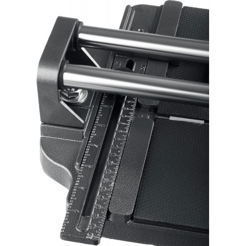 • Для работы с керамогранитом и керамической плиткой повышенной толщины плиткорез оснащен ручкой, направляющими и литой платформой.