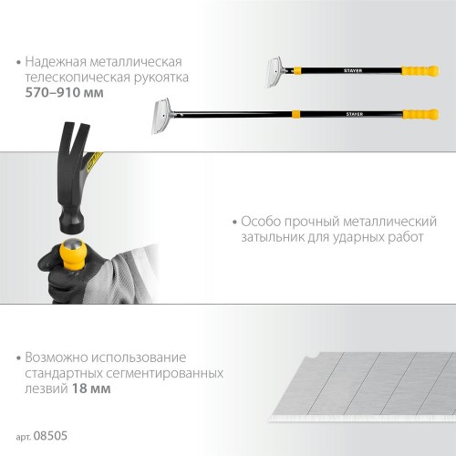 STAYER 100 мм, длина 570 - 910 мм, телескопический ударный скребок (08505_z02)