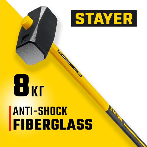 Кувалда STAYER 20110-8_z03, предназначена для выполнения монтажных и демонтажных, слесарно-монтажных работ. Антивибрационная технолгия (АВТ). Кованая голова. Рельефное противоскользящее покрытие рукоятки. Фиберглассовая рукоятка.
