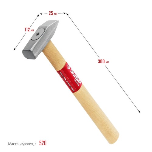 Молоток слесарный с деревянной рукояткой ЗУБР 20015-04_z02, предназначен для слесарно-монтажных работ. Инновационная фиксация головы при помощи клина, металлической пластины и шурупа. Кованая голова с долговечным цинковым покрытием. Изготовлен из стали 45 по ГОСТ 1050-88. Рукоятка из древесины высшего сорта. Рабочие поверхности закалены до 50,5-57 HRC. Надежность соединения головы с рукояткой многократно превышает ГОСТ 2310-77.