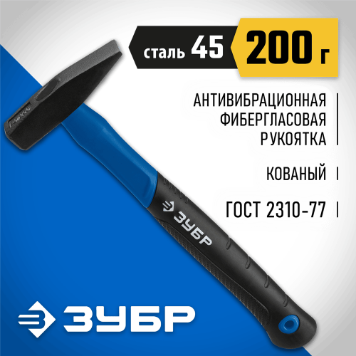 Молоток слесарный ЗУБР 20020-02_z01, предназначен для слесарно-монтажных работ. Двухкомпонентная фиберглассовая рукоятка. Рабочие поверхности головы закалены индукционным методом.