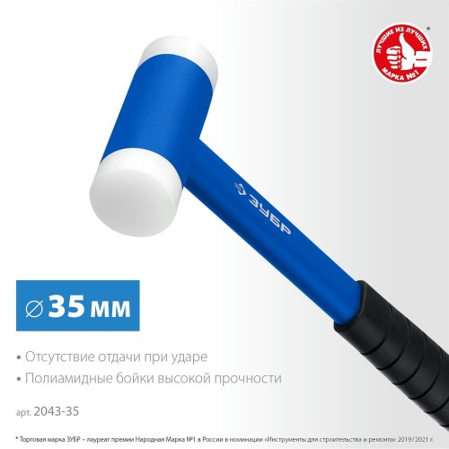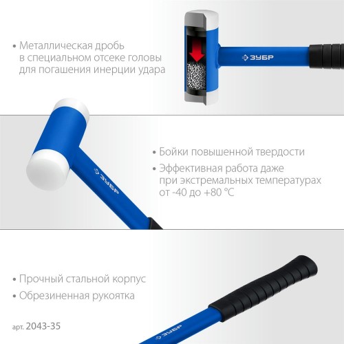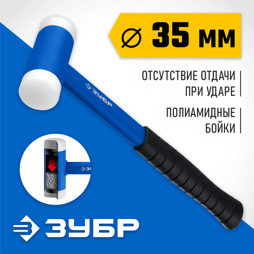 ЗУБР БМП, 620 г, 35 мм, Безынерционный молоток с полиамидными бойками (2043-35)