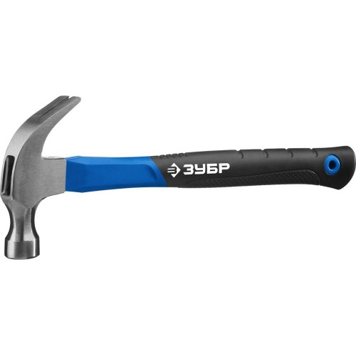 Молоток-гвоздодер ЗУБР 20235-450_z01, предназначен для слесарно-монтажных работ. Антивибрационная технология АВТ. Особопрочное крепление головы. Фиберглассовая рукоятка. Голова из стали 55. Рабочие поверхности головы закалены индукционным методом.