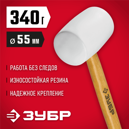 Киянка Зубр 20511-340_z02, с резиновым бойком предназначена для бережной работы без следов на материалах со светлой поверхностью. Натуральная износостойкая резина - не подвержена раскалыванию, выкрашиванию, растрескиванию. Прочное соединение головы к рукоятке стальным штифтом.