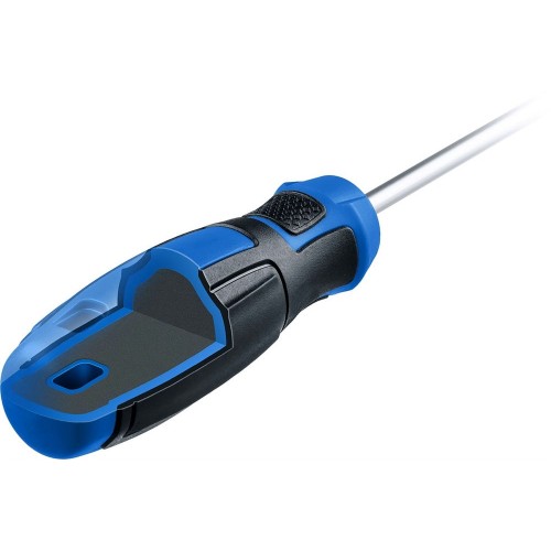 Отвертка выдерживает высокие нагрузки, благодаря высокой твердости наконечника и специальной закалке. Комфортная рукоятка обеспечивает твердый хват и удобство работы.