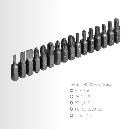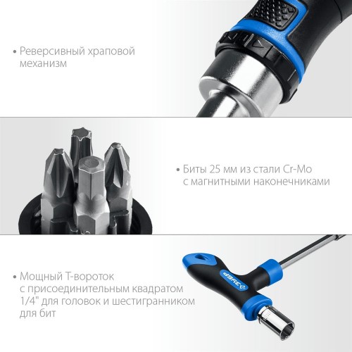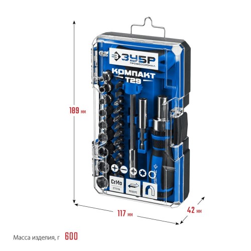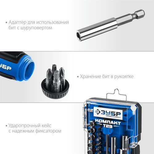 Профессиональный компактный набор с реверсивной отверткой для работы как с ручным так и с электроинструментом