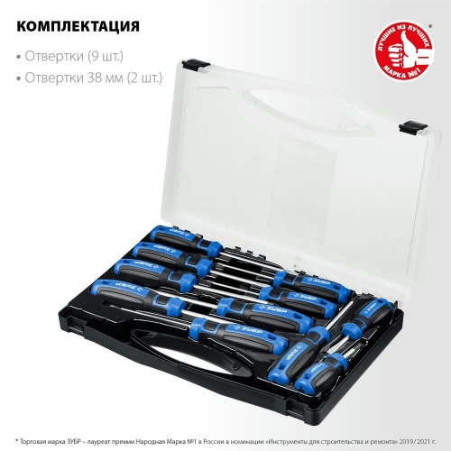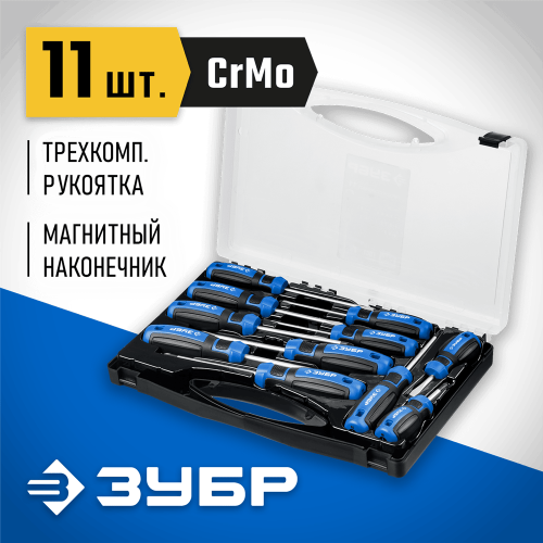 Набор отверток Зубр 25241, предназначен для монтажа и демонтажа резьбовых соединений. Удобный кейс для транспортировки и хранения отверток. Материал стержня - сталь Cr-Mo. Твердость шлица превышает требования ГОСТ. Черненный магнитный наконечник помогает при работе в труднодоступных местах. Мощная трехкомпонентная рукоятка обеспечивает надежный и комфортный хват.
