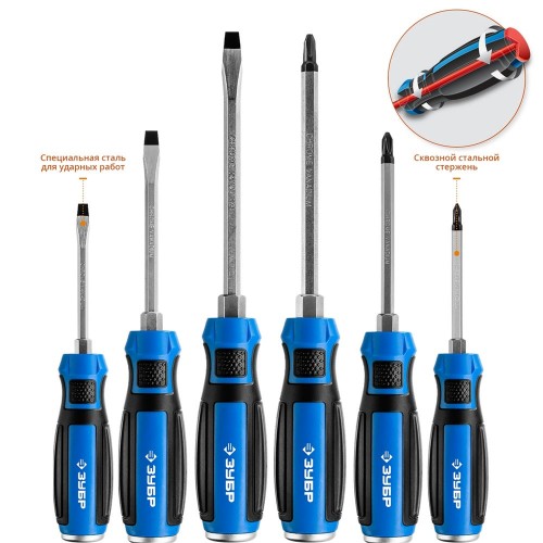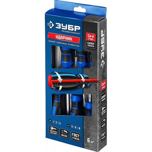 Набор отверток ударных с магнитным наконечником ЗУБР 25026, предназначен для монтажа и демонтажа резьбовых соединений с применением значительных усилий. Благодаря высококачественной хромованадиевой стали и сквозному стержню способны выдерживать значительные нагрузки. Высокопрочная Cr-V сталь с увеличенной механической прочностью. Сквозной стальной стержень. Стальной затыльник для ударных нагрузок. Шестигранный усилитель под ключ. Защита хромом от коррозии. Высокоточный магнитный наконечник.