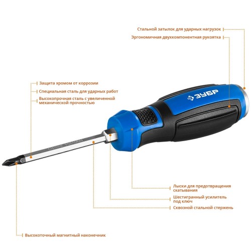 Отвертка ударная ЗУБР 250034-3, предназначена для монтажа и демонтажа резьбовых соединений с применением значительных усилий.