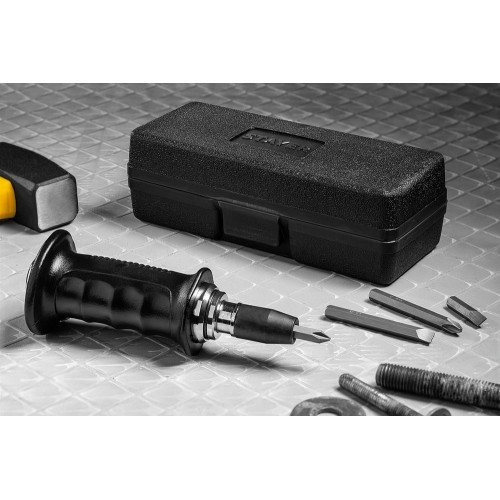 Отвертка STAYER 25663-H4_z01, предназначена для монтажа и демонтажа резьбовых соединений. Профессиональная ударно-поворотная отвёртка Stayer соответствует высоким техническим требованиям. Позволяет легко открутить прикипевший крепеж. Биты изготовлены из высококачественной стали, обладают повышенным ресурсом и обеспечивают длительную работу. Протектор для защиты руки.