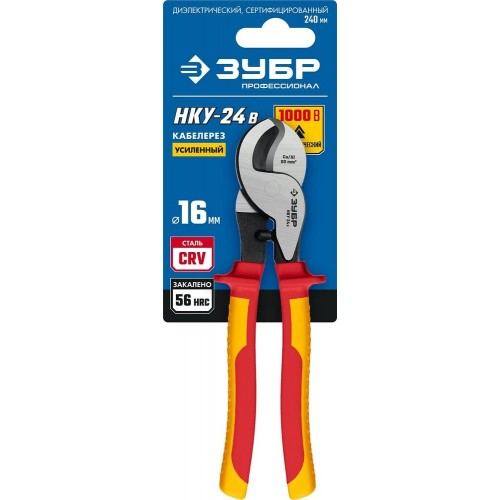 Кабелерез ЗУБР НКУ-24В 23346-25V, предназначен для резки небронированного одножильного и многожильного кабеля из цветных металлов без деформации и замятия краев. Для работ под напряжением до 1000 В. Обладает повышенным ресурсом, обеспечивает высокое качество электромонтажных работ.