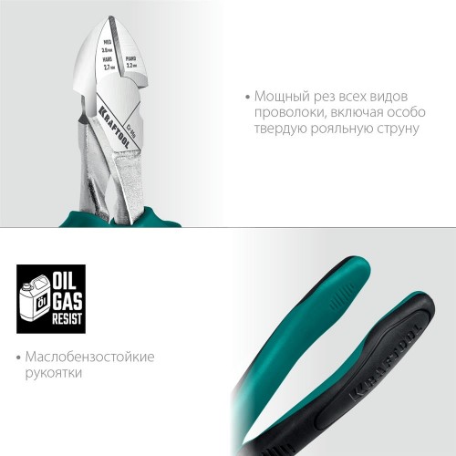 Бокорез усиленный KRAFTOOL 22011-5-18_z01 предназначен для слесарных, монтажных и ремонтных работ. Имеется шарнирное соединение Power Shift. Инструмент разрезает все виды проволоки, включая особо твердую рояльную струну. Рукоятки - маслобензостойкие. Длина - 180 мм.