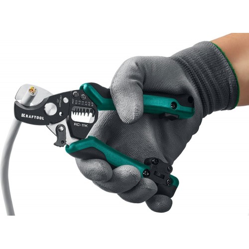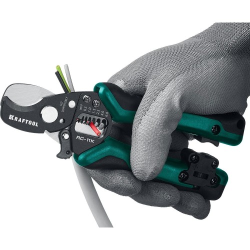 Кабелерез многофункциональный KRAFTOOL RC-11K 22696-3, предназначен для резки небронированного одножильного и многожильного кабеля из цветных металлов без деформации и замятия краев. Изготовлен из высококачественной стали с закалкой рабочих поверхностей, предназначен для профессионального применения. Обладает повышенным ресурсом, обеспечивает наивысшее качество электромонтажных работ.
