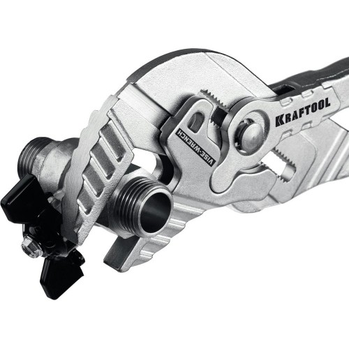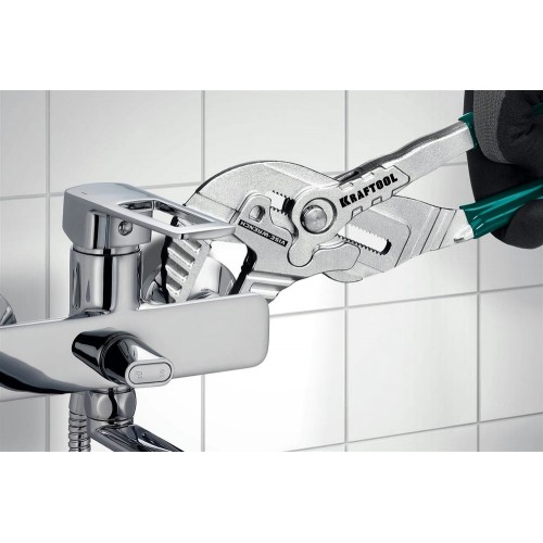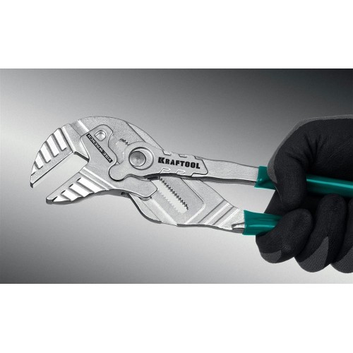 Клещи переставные-гаечный ключ KRAFTOOL – профессиональный инструмент с постоянно параллельными губкам. Заменит набор из всех ключей и обеспечит полную сохранность хромированного крепежа.