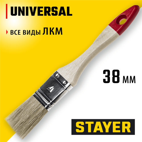 Кисть плоская малярная STAYER 0101-038, предназначена для работ со всеми видами лакокрасочных материалов, в первую очередь с масляной краской, олифой, древесным маслом. Щетина кисти надежно закреплена бандажом из никелированной стали, а наличие удобной деревянной рукоятки обеспечит комфортную работу.