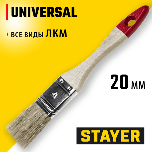 Кисть плоская малярная STAYER 0101-020, предназначена для работ со всеми видами лакокрасочных материалов, в первую очередь с масляной краской, олифой, древесным маслом. Щетина кисти надежно закреплена бандажом из никелированной стали, а наличие удобной деревянной рукоятки обеспечит комфортную работу.