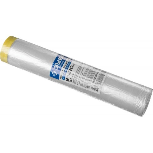 Пленка укрывная ЗУБР 12250-210-20, предназначена для защиты от краски и пыли при выполнении автопокрасочных и других ремонтных и отделочных работ. Пленка ЗУБР обеспечит надежную защиту поверхности от пыли, грязи, влаги и краски при выполнении автопокрасочных и других ремонтных и отделочных работ. Закрепляющая клейкая лента по всей длине полотна позволяет плотно прикрепить пленку к защищаемой поверхности, не оставляя следов после использования. ЗУБР - выбор профессионала. Наличие закрепляющей клейкой ленты по всей длине полотна позволяет плотно прикрепить пленку к защищаемой поверхности и надежно оградить ее от попадания краски, грязи и влаги. Не оставляет следов.