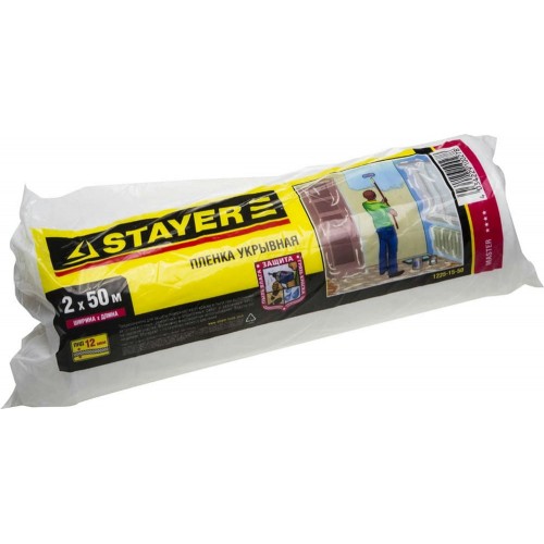 Пленка укрывная STAYER 1225-15-50, предназначена для защиты от краски и пыли при выполнении автопокрасочных, ремонтных и отделочных работ и различных работ на садовом участке. Укрывная пленка высокой прочности обеспечит прекрасную защиту от пыли, грязи, влаги и краски при проведении автопокрасочных, ремонтных и отделочных работ, а также различных работ на садовом участке. Благодаря особым прочностным свойствам, подходит для многократного применения.