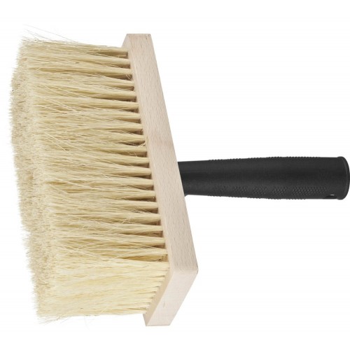Щетина из натурального растительного волокна отлично подходит для работы со всеми типами ЛКМ, битумными смесями, грунтовками, побелками на больших поверхностях, клеевыми составовами, для размывки потолков. Щетина кисти надежно закреплена в деревянной основе, а наличие удобной пластмассовой рукоятки обеспечит комфортную работу