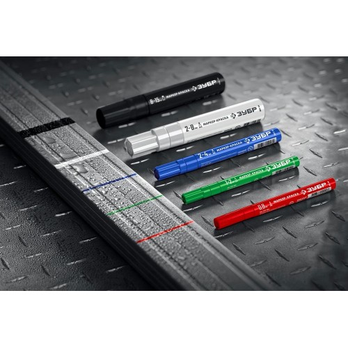 Маркер-краска ЗУБР 06329-4, предназначен для маркировки заготовок из камня, стекла, металла, пластика и других материалов. Универсальный маркер с жидкой быстросохнущей краской подходит практически для любой поверхности. Данный маркер не смывается водой, не выгорает на солнце и устойчив к температурным перепадам. Практичеcки безопасен для человека, поскольку не имеет в составе токсичных веществ, таких как ксилол.