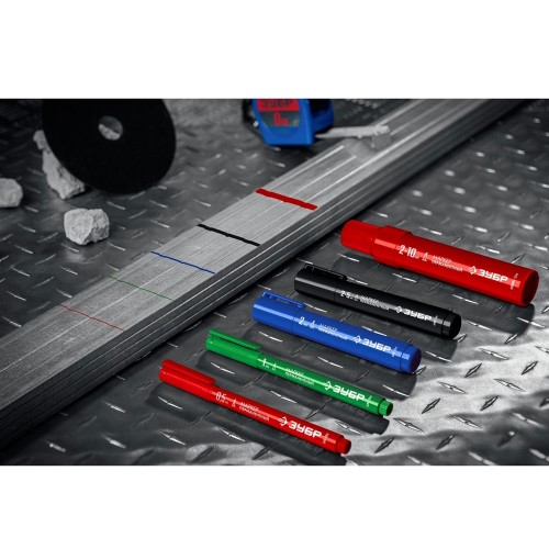 Маркер ЗУБР 06333-4, предназначен для нанесения маркировки, надписей, графических и текстовых обозначений, где требуется разборчивая маркировка при проведении ремонтных, строительных и отделочных работ.