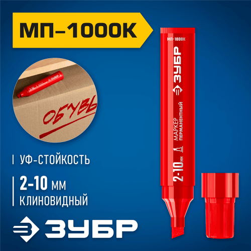 Маркер перманентный с клиновидным наконечником. Экстра-большой объем заливаемых чернил делает данный маркер самым долговечным среди перманентных маркеров ЗУБР. Так как перманентный маркер пишет практически на любой поверхности, он применяется в различных сферах, где требуется нанести надпись, рисунок, знак или указатель.