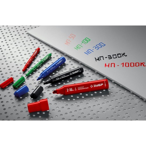Маркер ЗУБР 06333-3, предназначен для нанесения маркировки, надписей, графических и текстовых обозначений, где требуется разборчивая маркировка при проведении ремонтных, строительных и отделочных работ.