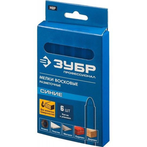 Мелки разметочные восковые ЗУБР 06330-7, предназначены для нанесения разметочных линий и подписей на различных металлических заготовках, трубах и прочих конструкциях при проведении монтажных и строительных работ. предназначены для нанесения разметочных линий и подписей на различных металлических заготовках, трубах и прочих конструкциях при проведении монтажных и строительных работ. Незаменимы при нанесении пометок на гладкие и шероховатые материалы (металл, бетон, пластик, керамику, древесину, резину и т.д.) Не боятся влаги, подходят для работы как на сухой, так и на влажной поверхности. Шестигранная форма исключает скатывание с наклонных поверхностей. Изготовлены из качественного воска.