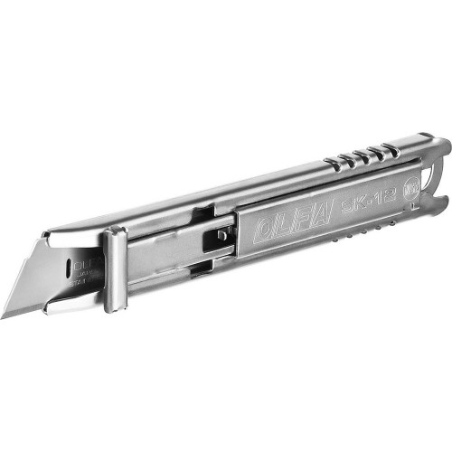 Нож безопасный с трапециевидным лезвием OLFA OL-SK-12, предназначен для резки бумаги, картона, упаковочной пленки. Используется для пищевой промышленности, на складах, в магазинах, на производствах. Корпус ножа, лезвие и возвратная пружина целиком из нержавеющей стали. Сертифицировано NSF.Лезвие автоматически убирается в корпус сразу после окончания разрезания. Имеет отверстия по бокам для сквозной очистки и дезинфекции ножа. Форма рукоятки удобна для работы как левой так и правой рукой.