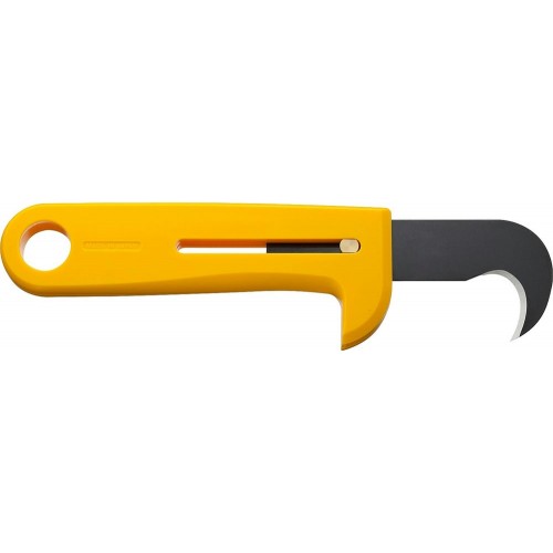 OLFA HOK-1 идеально подходит для резки упаковочных пленок, веревок и лент. Нож обладает высокой режущей способностью, но при этом не повреждает поверхность или внутреннее содержимое упаковки за счет уникальной формы.Специальный упор на корпусе для защиты руки от соскальзывания и возможность полностью убирать лезвие в ручку обеспечивают безопасность во время работы и транспортировки. Лезвие выполнено из углеродистой инструментальной стали для эффективного реза и длительного срока службы.