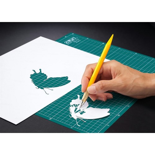 Дизайнерский нож OLFA AK-5 имеет компактную и легкую конструкцию с наконечником в форме шпателя. В комплект входит 30 сменных лезвий, а также игла для проколов. Заостренное основание ручки расширяет возможности применения ножа для рукоделия: тиснение, точные складки и надрезы, а также разглаживание клейких материалов. Используйте квадратный футляр для лезвий в качестве подставки для ножа, а также для транспортировки, хранения новых лезвий и утилизации использованных. Цанговый зажим позволяет удобно удерживать нож в руке и легко заменять лезвия. Добавьте художественный нож OLFA к своим инструментам, чтобы создавать миниатюры.