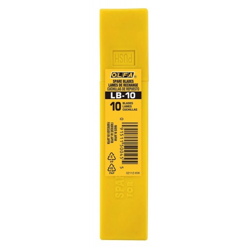 Лезвие сегментированное OLFA OL-LB-10, предназначено для реза различных материалов: бумаги, картона, обоев и пленки. Лезвия изготовлены из высококачественной японской инструментальной стали и профессионально заточены для обеспечения превосходной остроты и непревзойденной долговечности режущей кромки. Лезвия имеют глубокую и гладкую сегментную линию для легкого отламывания. Упакованы в удобный кейс для переноски и хранения. Ширина лезвия: 18 мм. Габариты лезвия: 18 х 100 х 0.5 мм.