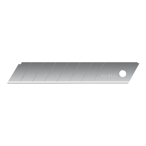 Лезвия STAYER 0915-S5, используются в качестве сменных рабочих элементов в ножах с шириной направляющей пластины 18 мм для профессионального реза различных материалов: бумаги, картона, обоев и пленки. Обладают повышенным ресурсом, обеспечивают длительную и качественную работу.