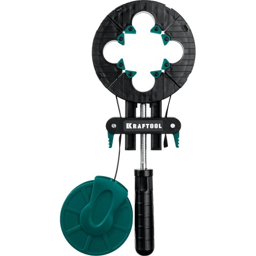 Ременная струбцина KRAFTOOL BC-40 32207-1, предназначена для фиксации больших или сложных по форме предметов. Уникальная конструкция ременной струбцины позволяет максимально надежно фиксировать заготовки любой формы с периметром до 4 м. Бережная фиксация любых углов съемными плавающими упорами из пластика. Две направляющие с квадратным сечением обеспечивают равномерное распределение стягивающей нагрузки и дополнительную жесткость конструкции. Удобная катушка для смотки прочной нейлоновой ленты. Кулачковые фиксаторы для быстрого зажима ленты. Эргономичная рукоятка для крепкого хвата.