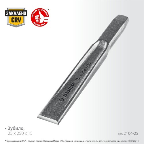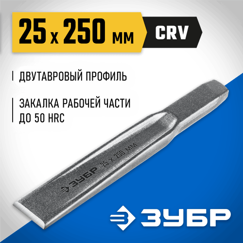 Зубило слесарное по металлу ЗУБР 2104-25, предназначено для обработки различных металлов, рубки и раскалывания металлического крепежа. Зубило произведено из Cr-V стали, закалено. Двутавровый профиль для усиления конструкции. Хромированное покрытие для защиты от коррозии.