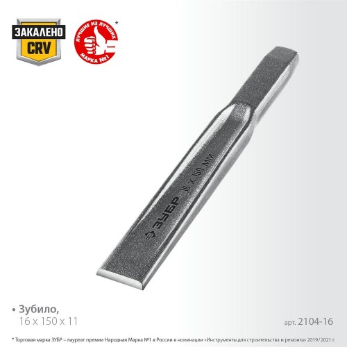 Зубило слесарное по металлу ЗУБР 2104-16, предназначено для обработки различных металлов, рубки и раскалывания металлического крепежа. Зубило произведено из Cr-V стали, закалено. Двутавровый профиль для усиления конструкции. Хромированное покрытие для защиты от коррозии.