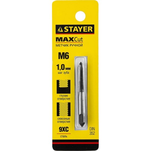 Метчик STAYER 28021-06-1.0, предназначен для ручного нарезания внутренней метрической резьбы в различных конструкциях и заготовках из стали или цветных металлов. Оптимально подходит для получения качественной и чистой резьбы в сквозных и глухих отверстиях в сталях и цветных металлах. Метчик изготовлен из инструментальной стали 9ХС в соответствии с ГОСТ 3266-81. что гарантирует постоянно высокое качество.