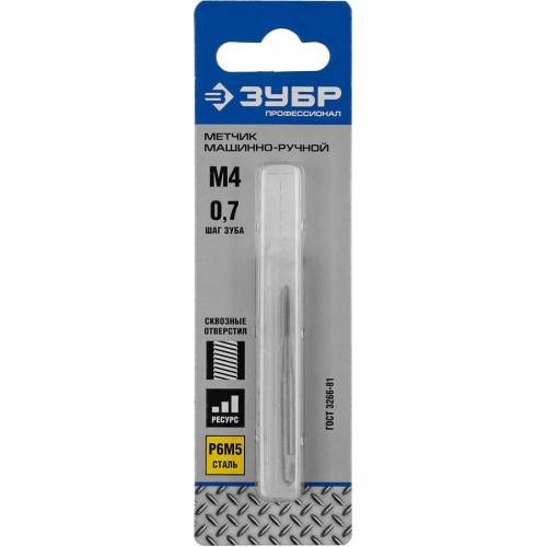 Метчик ЗУБР 4-28003-04-0.7_z01, предназначен для создания внутренней метрической резьбы в сквозных отверстиях в углеродистой и легированной стали с пределом прочности до 900Н/мм2, цветных металлах, пластике. Отличается высокой надежностью, что позволяет применять его даже в тяжелых условиях производства. Изготовлено из быстрорежущей стали Р6М5. Изготовлен в соответствии с ГОСТ 3266-81.