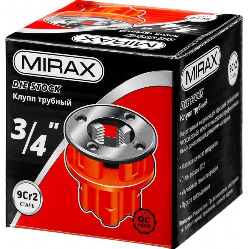 Клупп MIRAX 28241-3/4, предназначен для нарезания правой трубной конической резьбы на металлических трубах стандартного диаметра. Может использоваться как профессиональными сантехниками, так и домашними мастерами.