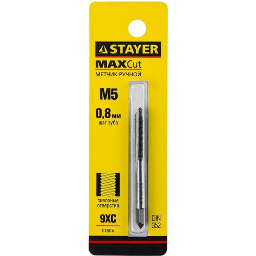 Метчик STAYER MASTER оптимально подходит для получения качественной и чистой резьбы в сквозных отверстиях в сталях и цветных металлах