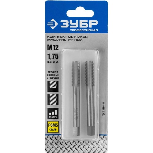 Набор метчиков М12 х 1,75 ЗУБР 4-28007-12-1.75-H2_z01, предназначен для нарезания внутренней метрической резьбы в сквозных и глухих отверстиях в сталях и цветных металлах. Изготовлен из быстрорежущей стали Р6М5 по ГОСТ 3266-81.