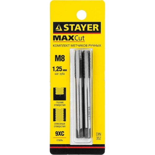 Набор метчиков STAYER 28025-08-1.25-H2, предназначен для нарезания внутренней метрической резьбы в сквозных и глухих отверстиях в сталях и цветных металлах. Метчики изготовлены из инструментальной стали 9ХС в соответствии с ГОСТ 3266-81, что гарантирует постоянно высокое качество.