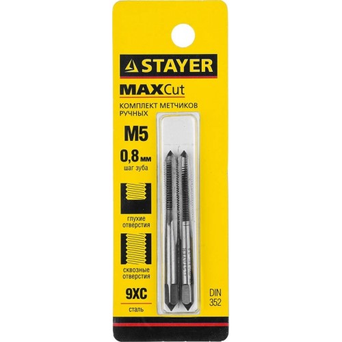 Комплект ручных метчиков STAYER MASTER оптимально подходит для нарезания качественной и чистой резьбы в глухих и сквозных отверстиях в сталях и цветных металлах