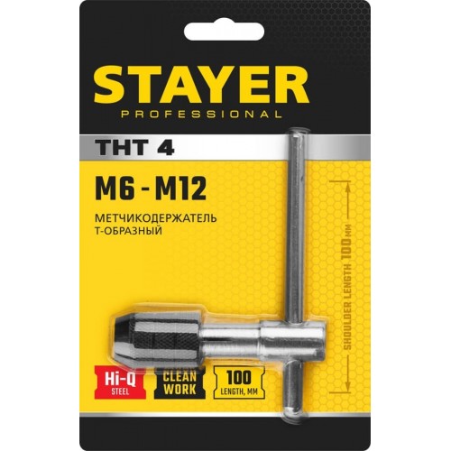 Метчикодержатель STAYER 28039-T4_z01, предназначен для жесткой фиксации метчиков при нарезании резьбы вручную.