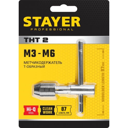 Метчикодержатель STAYER 28039-T2_z01, предназначен для жесткой фиксации метчиков при нарезании резьбы вручную.