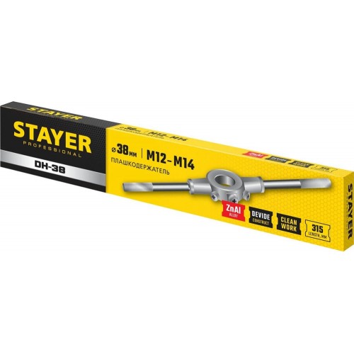 Плашкодержатель STAYER 28037-38_z01, предназначен для жесткой фиксации плашек размером 38 мм при ручных резьбонарезных работах.