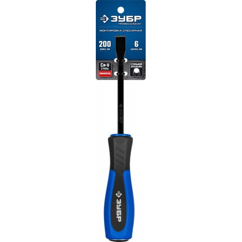 ЗУБР 200 мм, сталь 45, двухкомпонентная рукоятка, монтировка слесарная 2162-200_z01 Профессионал